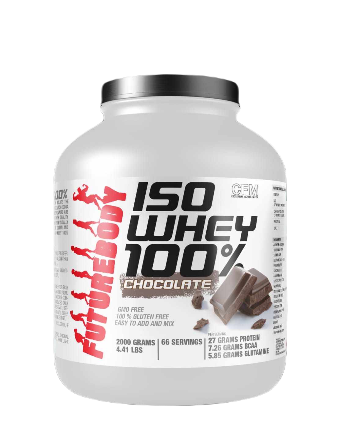 This Iso Whey 100% 2kg protein powder is a GMO-free, gluten-free option for individuals looking to increase their protein intake. Each serving 30g provides 27g of protein, 7.26g of BCAA, and 5.85g of Glutamine, making it an effective and efficient choice for muscle recovery and growth. Its easy-to-mix formula makes it a convenient addition to any diet or fitness routine.