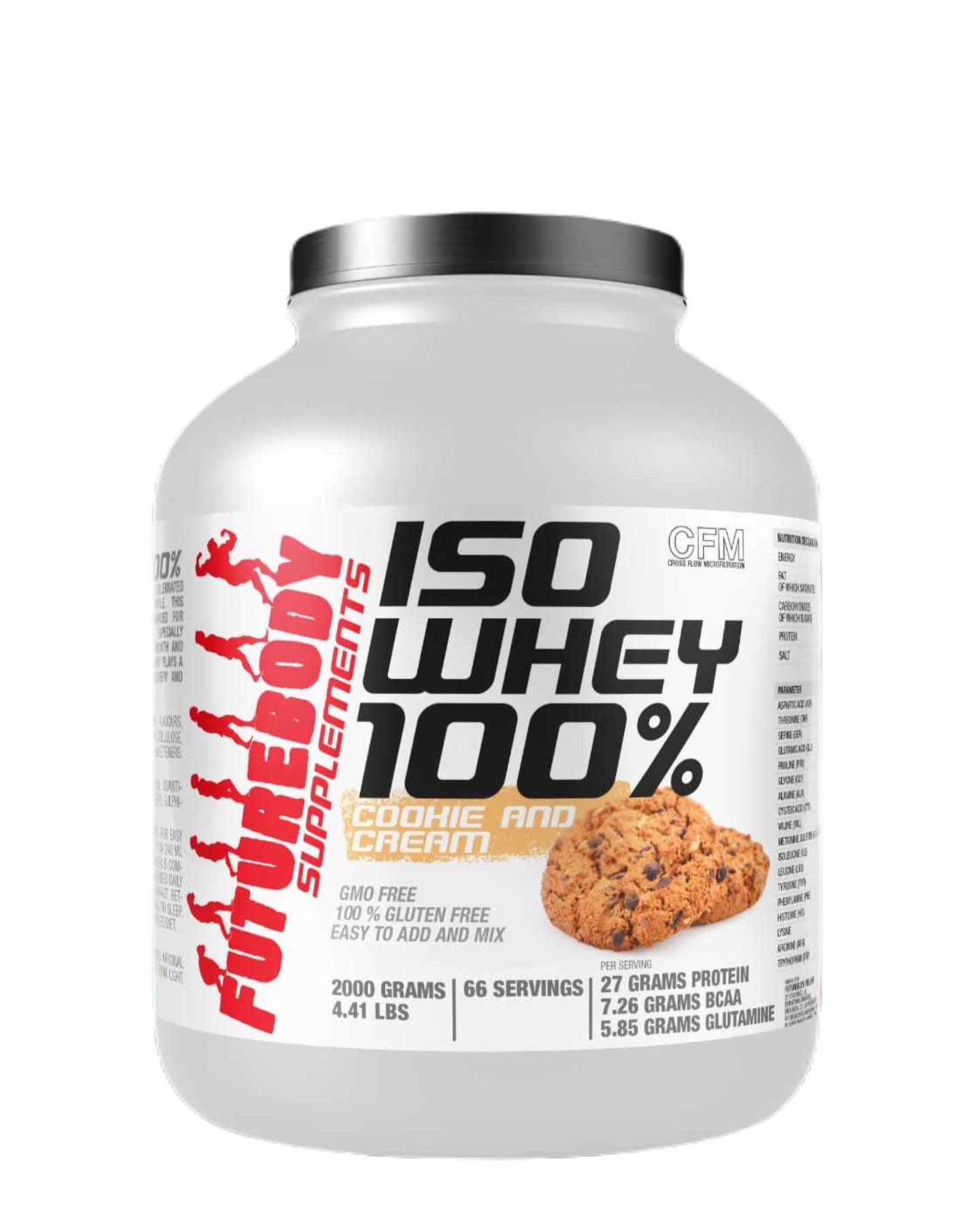 This Iso Whey 100% 2kg protein powder is a GMO-free, gluten-free option for individuals looking to increase their protein intake. Each serving 30g provides 27g of protein, 7.26g of BCAA, and 5.85g of Glutamine, making it an effective and efficient choice for muscle recovery and growth. Its easy-to-mix formula makes it a convenient addition to any diet or fitness routine.